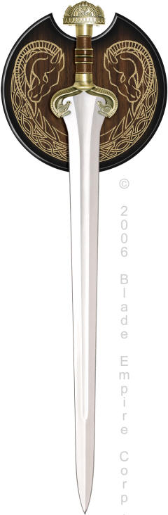 plated finish, the hilts are cast in the symbols of the famed horsed of