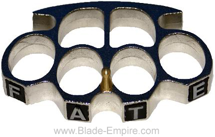 Deluxe brass knuckles that spell out FATE. Show your friends this