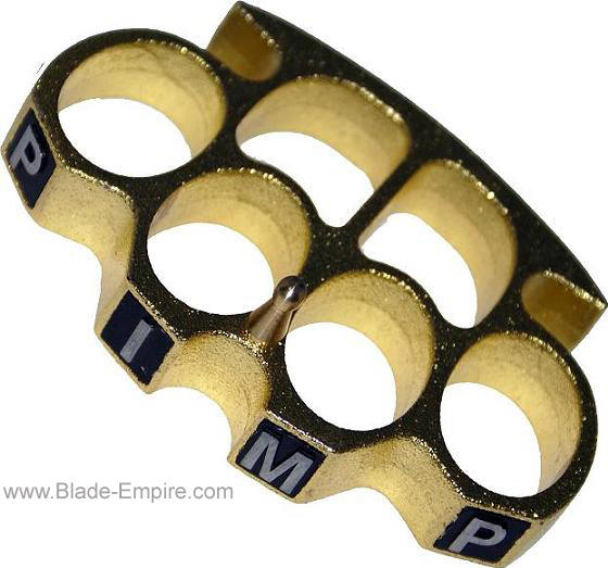 Deluxe brass knuckles that spell out PIMP. Show your friends who's