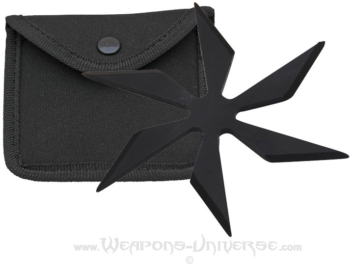 This 6 bladed throwing star in black color measures 3.75". Comes with a nylon case.