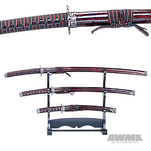 katana, 40" overall length, wakizashi, 32" overall length and tanto, 21"