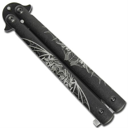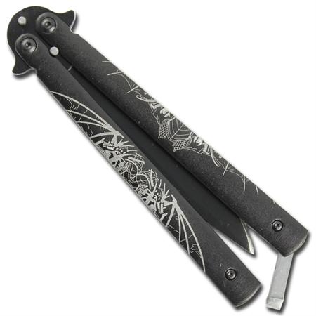 Steel Blade Style: Clip Point, Powder coated black Blade Thickness: 3 mm