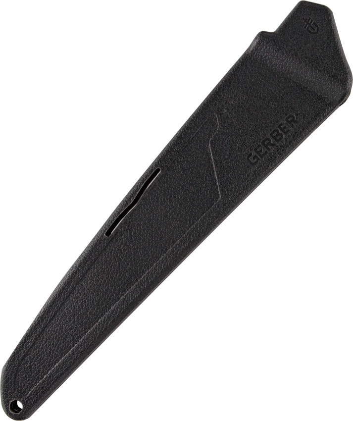 Gerber g2094 myth fixed blade saw. 9 3/4" overall. 6 1/4" SK5 high carbon steel saw blade with medium teeth. Brown and black rubberized T-handle. Black composition sheath. Hang packaged.